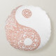 En härlig runda dekorativ kudde med en yin yang-design i rosa ros-färgaden guld fylld med mandala som mönster. Gör ett vackert tillägg till ett yogarum eller meditationsutrymme.