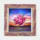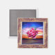 Rosa ros i oljemålning himlar i elegant vintage ram. En värdefull gåva till magnetsamlarföretag