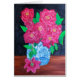 Original- oljemålning av konstnären, Susan Payne-Trutna av rosa ros i en kinesisk vas presenteras på denna noterar kortet.