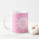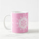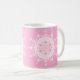 Den här vita mandala sitter på en ljus rosa bakgrund. Färg är enkelt och kvinnligt. Del av Fenten Mandala Collection.