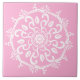 Den här vita mandala sitter på en ljus rosa bakgrund. Färg är enkelt och kvinnligt. Del av Payon Mandala-samlingen.