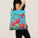 Blommönstret ro och körsbär på ditt val av underbar väska. En mycket färsk och summerande design. Tillgänglig i ditt val av bandalternativ. Anpassade i ditt val av bakgrund färg på både fram- och baksidan (Denna punkt visas i pulserande himlar blå). En bra och originell blommigt till din dag. Söt.