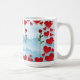 En drömmande valentin viskös mugg med rött hjärta som gräns och ro i mitten och sedan kaskade rosor runt mugg med molnen och himmel i bakgrunden och skapat en drömmarkänsla.