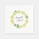 De vackra sommarserumlorna i bröllop har namn i handskrivna manus inuti en vattenfärgad oliver och löv.