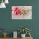 En klassisk elegant poster med ro och pärlor med fluffa fjädrar i förgrunden. Mycket feminin och söt.