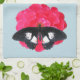 En digital målning av ett blommande röd ros som besöktes av en svart fjäril. Bilden har ingen bakgrund. Du kan välja en annan bakgrund färg för att bättre matcha ditt kök.
