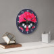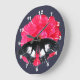 En digital målning av ett blommande röd ros som besöktes av en svart fjäril.
