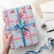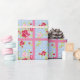 En söt som är papper med ro i blått med vitt polka dots och en passande rosa bakgrund.