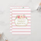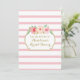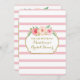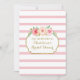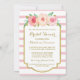 Personlig inbjudningskort för möhippa i ljusa ro rosa och vit rand mönster, vintage rosa vattenfärgblommor och guld detaljer.