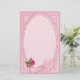 Snygg pastellrosa ros med matchande rosa oval gräns. Andas med hjärta och banderoll med bukett av djupt rosa ros.
