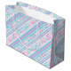 Söt Large Gift Bag, med mönster om rosa, himlar blå och vit diagonal Deckherd rand och Rosa ros. Inom ramen för uppsamlingen "sommardagar" i Posh & Painterly kan mönster anpassas så att det passar alla gift Bag.