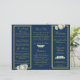 Ro Trifold-Bröllopsprogrammet för marint blå Guld-