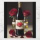 En vackert arrangerad vin flaska omgiven av vibrant röd ros.
