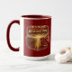 The mug’s bright white exterior highlights the artwork beautifully, while the colored rim and handle add a stylish pop that can match or complement your kitchen décor. Perfect for coffee, tea, or any favorite drink, this mug makes a meaningful addition to daily routines.