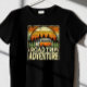 T-shirt vintage-stil med en reflekterande skåpbil som kör genom en skog med solnedgång och frasen "Road Resa Äventyr" 🚐 🌲 🌅