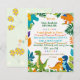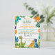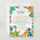 Gör din lilla födelsedagsfest ovanlig med denna sjudande inbjudan! Dinosaurier av ätliga tecknader på ljusa färger (grönt, orange, blått och turkos) omgiven av tropiska löv. Roligten "ROAR"-design och lekfull typografi skapar perfekten för ett förhistoriskt firande.