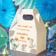 A coordinating favor box from the Basketball Dino birthday collection, featuring a playful stacked message reading “Dino Thank You for celebrating (add your child's name and age) Birthday.” Designed to hold small treats or party favors, it adds a fun and personalized finishing touch to the celebration.