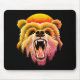 Inför en solnedgång med skog i bakgrunden är det en grizzly. Grafisk design för björn älskare och vilt fläkt.