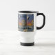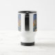 Roaring Lion at Sunrise - Papercut Style Travel Mug. Carry this majestic papercut art of a lion at dawn by the sea wherever you go. The double-wall stainless steel keeps drinks hot, and the spill-resistant lid ensures a secure commute. Customize it with your text for a unique personal touch.