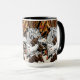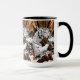Start your day with the fierce power of a white tiger gripping bronze gongs, sunburst lines exploding outward. Floating debris and pink floral accents balance chaos with beauty in a bold, action-packed design.