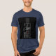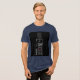This image showcases a navy blue t-shirt with a striking graphic design. The design features bold, modern typography that reads "RISE THE Robert CHALLENGES". The text is arranged in a dynamic, vertical and horizontal layout against a black background. Accents of red, white, and gray, along with a textured pattern resembling a barcode, add to the contemporary aesthetic of the design.