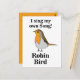 Robin Bird Funny Quote Postcard originally designed by Nisha Prabhu. Send a smile with our delightful Robin Bird funny quote postcard! Featuring a charming illustration of a quirky robin, this postcard is the perfect blend of whimsy and humor. Adorned with witty quotes like “I sing my own song!”, it’s an ideal way to brighten someone’s day or simply say hello. Whether you’re sending a quick note to a friend, acknowledging a special occasion, or simply sharing a laugh, our Robin Bird funny quote postcard captures the joy of connection with a lighthearted twist. It’s the perfect little reminder that a smile is just a postcard away!