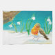 Robin Bird, snö och snödroppar Illustration Kökshandduk