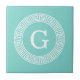 Robin Egg Wht Grekiska Nyckel Rnd Ram Initial Mono Kakelplatta