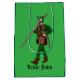 Den här presentpåsen i grönten innehåller illustrationer av Robin Huva och Little John i vintage-stil och är perfekt för alla presenter.