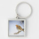 Robin perched på en gren i vinter fyrkantig silverfärgad nyckelring