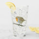 Glastumlare med foto av europeiskt rån (Erithacus rubecula) på ett tunt gren