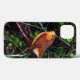 En fågel mellan grenar och färsk vår lämnar. Blandade media.