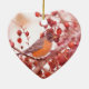 Fotografi av en amerikansk Robin sitta bland röda bär på en vinterdag. Ett underbart tillägg till Julgran!