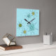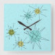 Robin's Egg Blue Atomic Starbursts Wall Clock Fyrkantig Klocka