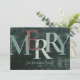 Hälsning, Merry, i stort brev på grönt nedfläckad wood.