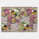 Handdragen mönster med olika blommor-, vatten-, anemon-, persiko-, dahlia- och robinfåglar