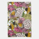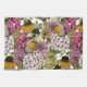 Handdragen mönster med olika blommor-, vatten-, anemon-, persiko-, dahlia- och robinfåglar