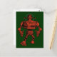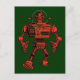 En 60:s reflexfip-fi-robot teckning, i svart och rött, som kommer till dig, rr! Whirr, bzzt, ping, ding, clink, chugga, whiz.