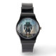 Robot 4 svart silikon armbandsur med siffror
