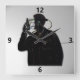 Den här väggklockan visar en bild av en robotman med en elektrisk sladd som är ansluten i bakhuvudet. Mannen har lyft fram ansikte och håller ut det framför honom. Det finns många färgad-ledningar som går från hans avskilda ansikte till hans tomma framkant. En uttrycklig och fantasifull bild som min son David Mann skapar.