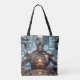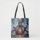 A humanoid robot is seated at a workbench surrounded by tools and intricate components. The setting is futuristic with digital screens in the background.