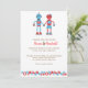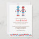 Ett sött par röda och blå robotar (i kärlek!) är de viktigaste stjärnorna för funkyns bröllopsinbjudan. Se alla matchande objekt för samlingen: Besök Poptastic Bride Boutique: