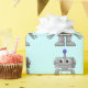 Detta slående in papper presenterar att le robotar, på en bakgrund för anpassadeblåttgrönt.