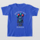 Personlig pojkens födelsedag T-shirt med ett robottema. Färg är blått, rött och svart. En tecknad robot som håller upp röda och blå ballonger. Tvätta för nån liten pojke som kärlek robotar!