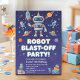 En söt design med robotar i rymden. Anpassa detaljerna för en chic födelsedagsfirande!