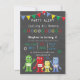 Robots Födelsedagsfest inbjudan personlig, Robots illustrerar i klarsynt gult, rött, grönt och blått färg.