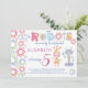 Vattenfärgspastell rosa, blå och orange robotar och kugghjul med rolig färgrik typografi manus som gör ett vackert litet personligt födelsedagskort för barn. Lämplig för både pojkar och flickor.
