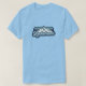 A stylish Rochebrune T-shirt featuring a bold alpine mountain graphic with layered blue tones and flowing script lettering. Shown on a light blue shirt, this design has a clean, cool mountain feel that works especially well for ski lovers, snowboarders, hikers and anyone drawn to alpine travel style. The soft blue palette gives it a fresh retro-outdoors look while keeping the design easy to wear as a casual mountain-inspired tee.