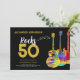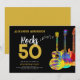 Personliga 50-årsfestinbjudningar med tre coola akvarellgitarrdesigner. En elgitarr med eldmönster och röd pickguard, en flerfärgad semiakustisk gitarr och en psykedelisk klassisk akustisk gitarrillustration med personlig modern svart och guldtypografi. Denna lättanvända mall skapar den perfekta inbjudan för att fira femtioårsdagen i rock n roll-stil och är idealisk för gitarrister, musiker och musikälskare. Varje gitarrspelare kommer att berätta för dig att man aldrig kan ha för många gitarrer. Denna coola moderna musikinstrumentdesign firar musiken energin hos detta underbara musikinstrument och är det perfekta sättet att rocka en femtioårsfirande. Originalkonst av konstnären Catherine Sweetman