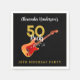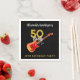 Fira hans femtioårsdag i rock and roll-stil med denna coola 50 Rocks personliga svarta pappersservett för 50-årsfirande. Oavsett om det är för din rockstjärna-make, pojkvän, pappa eller väns milstolpe-födelsedag, kommer denna coola illustration av elgitarr med röd pickguard, musiknoter och modern typsnittskript i guld att fira dem i sann rock n roll-stil. Lätta att använda mallar så att du kan lägga till födelsedagsfirarens namn. Perfekt för ett svart och guld-färgschema och en live-musik-evenemang. Kolla in samlingen 50 Rocks för 50-årsfirande med matchande festtillbehör. Musiker, gitarrister och live-musikälskare kommer att älska detta trendiga musiktema. Originalkonst av